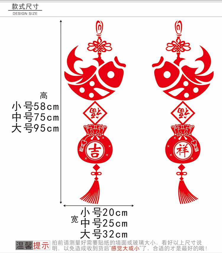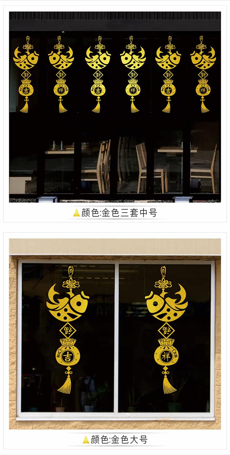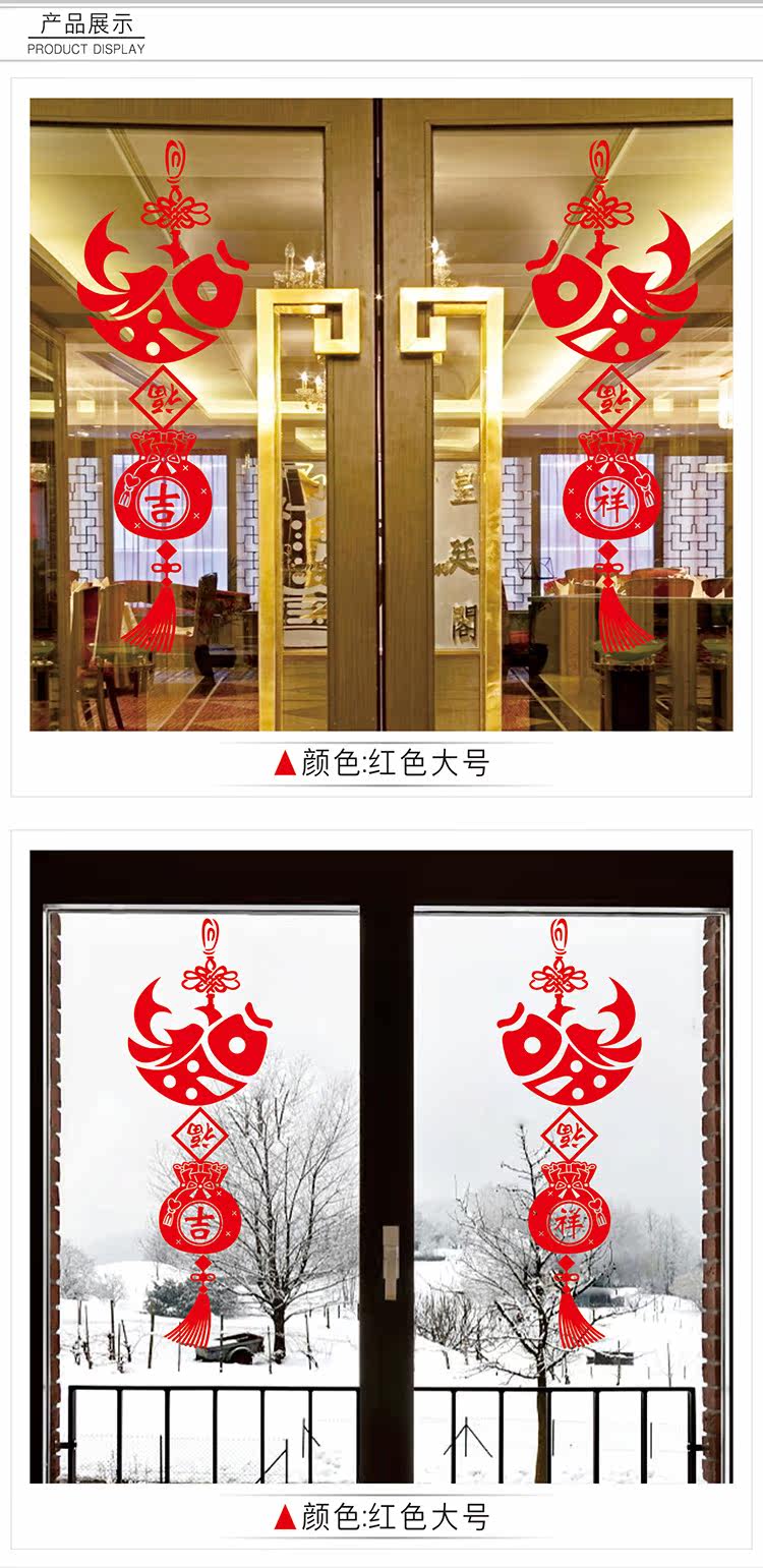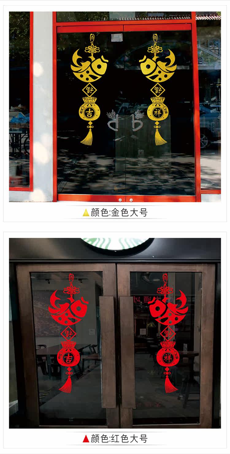 新年装饰贴纸店铺橱窗贴玻璃贴墙贴年货墙贴双鱼字贴纸中国结门贴