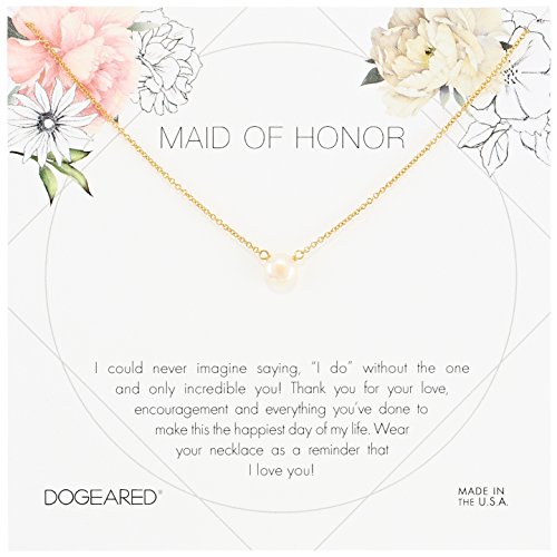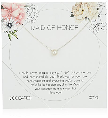 -. Title : Dogeared Maid Of Honor Flower Card Small Button White Pearl Chain Necklace, 16" + 2" Extension