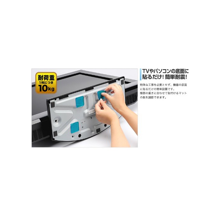 진도7에 대응한 내진 매트입니다.지진에 의한 TV나 PC의 전도를 막습니다.특수한 공사를 필요로 하지 않는다,붙이는 것만(만큼)의 간단 설치입니다.쓰레기 등의 부착에 점착력이 저하한 경우는,헹구는 것으로 점착력이 부활 합니다.