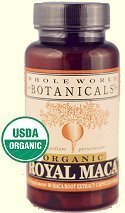 Oraganic Royal Maca by Whole World Botanicals 120 VegCap Oraganic Royal Maca 120 VegCap SAupports Elimination pf Peri-Menopause Systoms Lepidium peruvianum meyeni Made with USDA Certified Organic Maca Roots Gluten Freedom Suggested Use As a dietary supplement WOMEN For menopause take 3-12 caps per day with meals depending on severity of symptoms. For PMS take two caps per day. MEN Take 2 caps daily or 6 caps twice weekly to promote healthy sexual func- tioning. To support Healthy Hormone Balance 1-2 caps daily or as directed by a physician. Periodic rest from Royal Maca is recommended except for those with severs symp- toms. Or as directed by your healthcare professional. Supplement Facts Serving Size Two Casules Servings Per Container 60 Amount Per Serving Daily Value Total Carbohydrates 0.66 g 1 Selenium 2.49 mcg 6.6 Maca Root 1000 mg Percent Daily Values are based on a 2 000 calorie diet Other Ingredients (Capsules) Ce