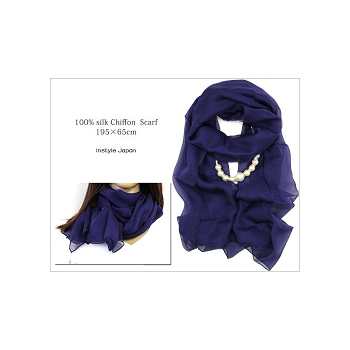 원본상품명: シルク 100% 大判 スカフ ストル 【 紺 】 絹 UV 防寒 シフォン 天然素材 紺 dark blue navy 群 195×65cm [Instyle Japan]