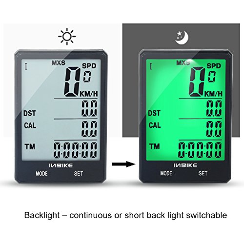 - BACKLIGHT DESIGN - This water resistant biking computer designed with backlight,continuous light and short light 2 modes, makes the display readable all the time when in low light conditions. Perfect for night riding.