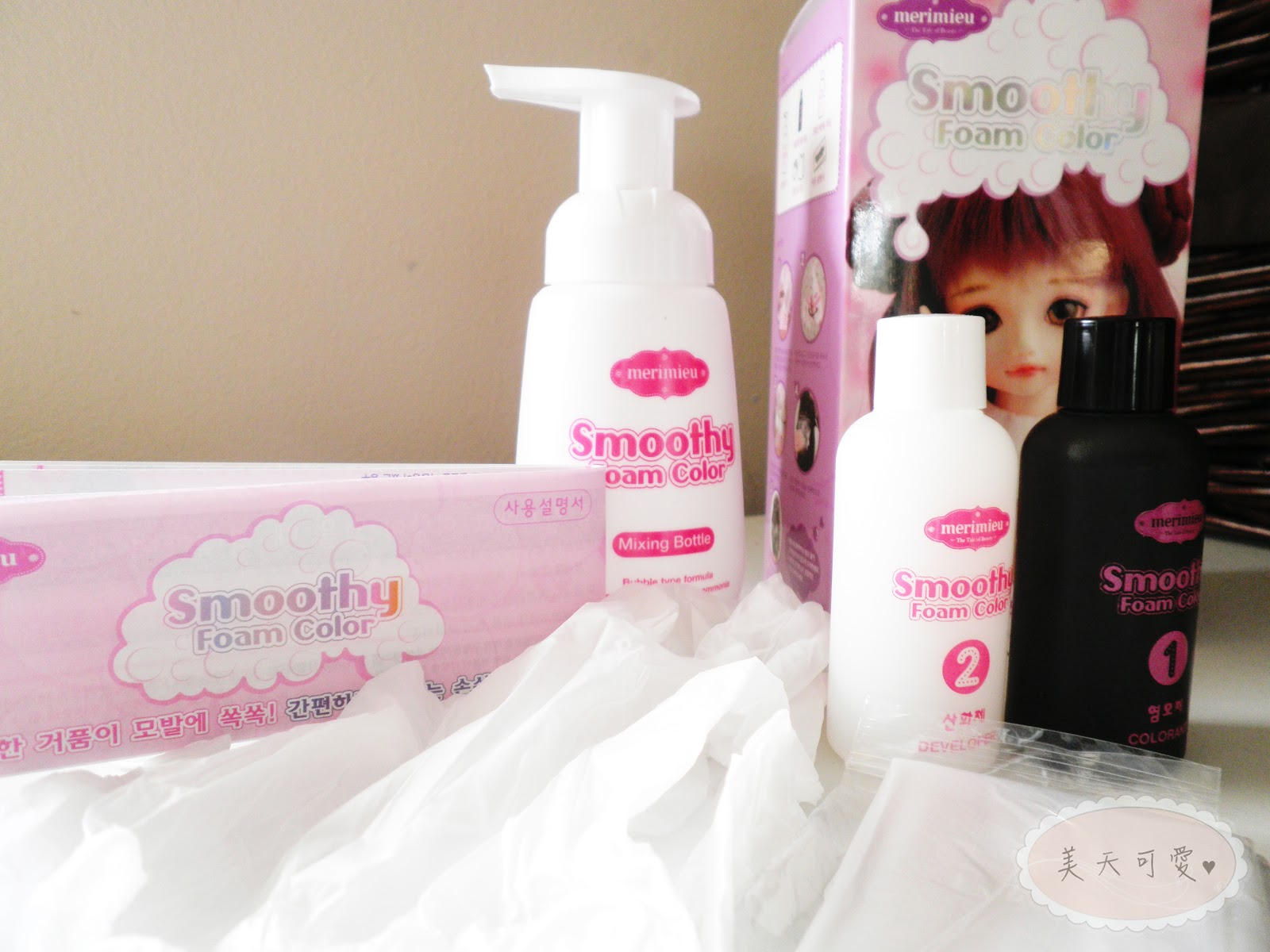 Popular MERIMIEU Smoothy Foam Color hair dye from Korea.