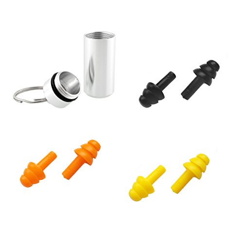 ALIMPIA Reusable Universal Size Hearing Protection Ear Plugs for Concerts, Music, Musicians, Bikers, Swimming, Hunting Set of an Aluminium Case + 30 pcs New Generation Slicone Mix Color Tree