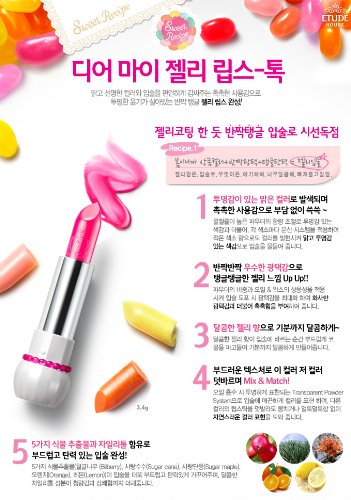 Size: 3.4g (0.11 oz.) Dear My Jelly Lips-Talk is a sheer-colored lipstick that gives you irresistible jelly lips with its moist and shimmery finish.