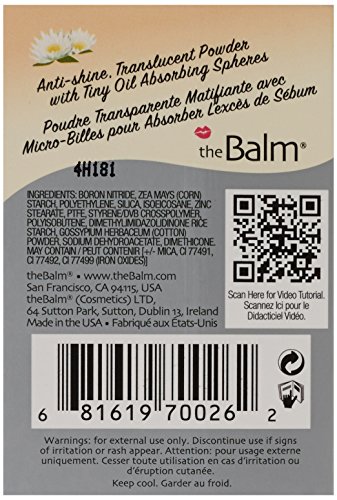 Powder your face without a trace Virtually invisible Leaving you with a soft matte finish Brand : theBalm Item model num : 262 MPN(PartNumber) : 262 EAN : 0885691825244 Product Dimensions(LxWxH) : 6x2x8cm ; 18 g Package Dimensions(LxWxH) : 8x6x2cm ; 18 g