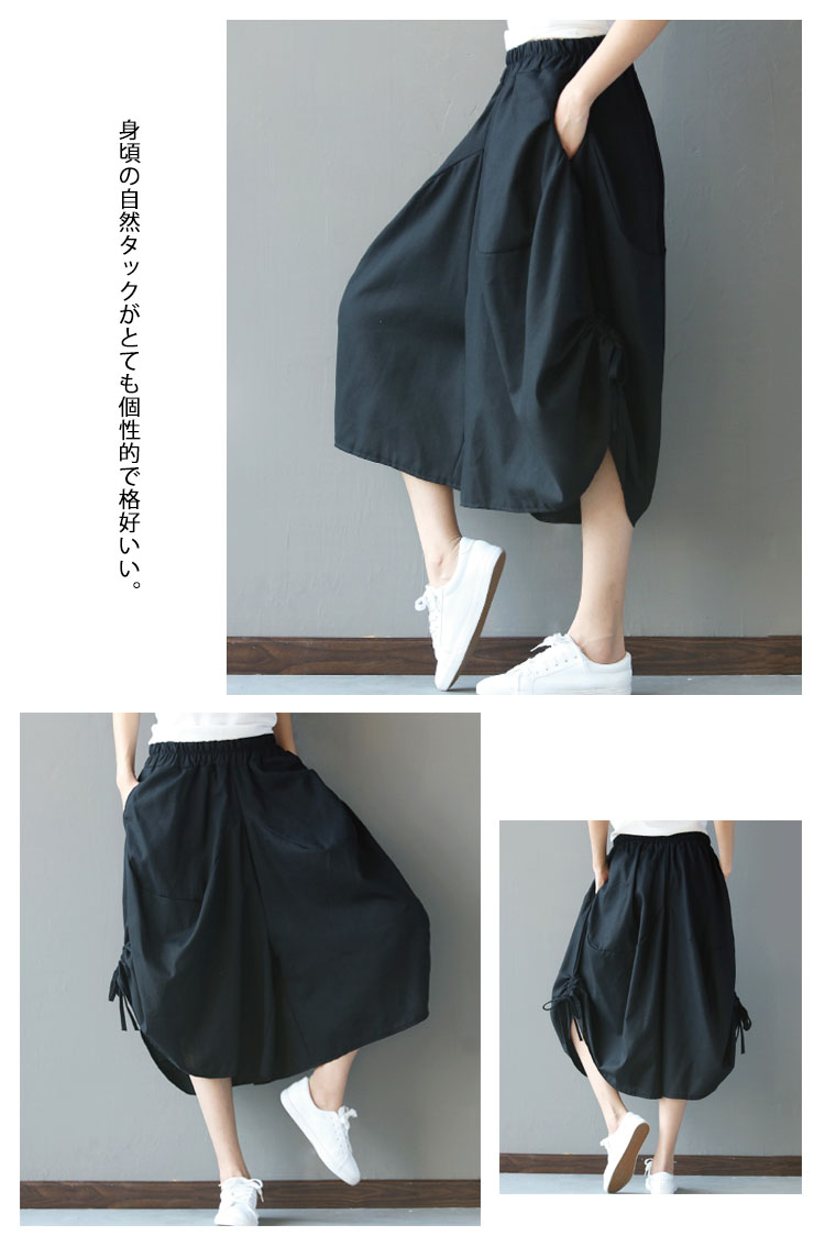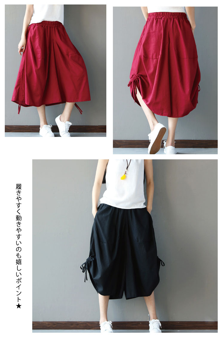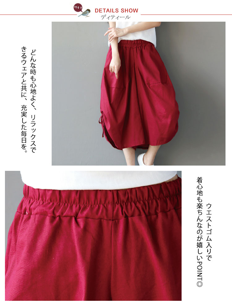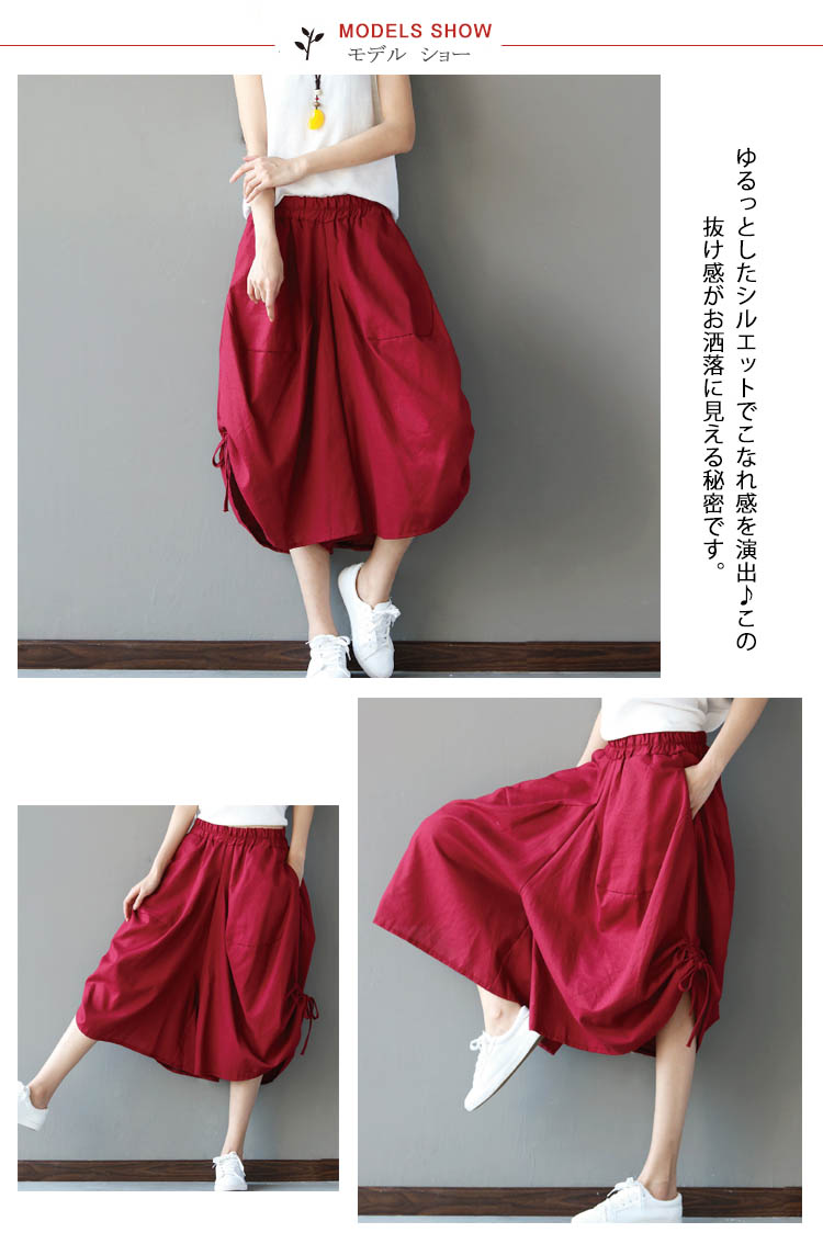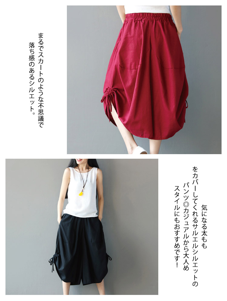 | ゆるっとしたシルエットでこなれ感を演出♪この抜け感がお洒落に見える秘密です。履きやすく動きやすいのも嬉しいポイント★身頃の自然タックがとても個性的で格好いい。さらっとした穿き心地でこれからの季節にぴったり! | |