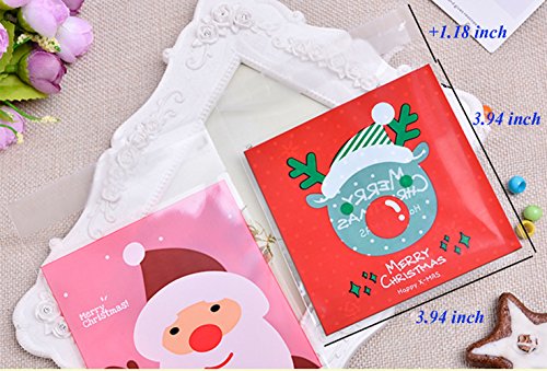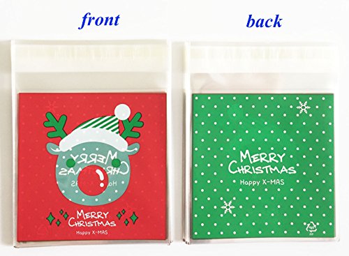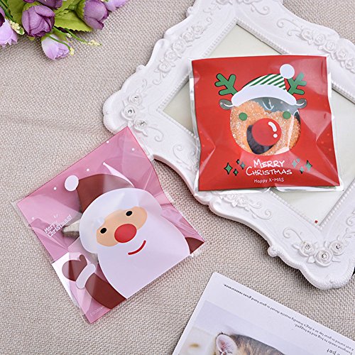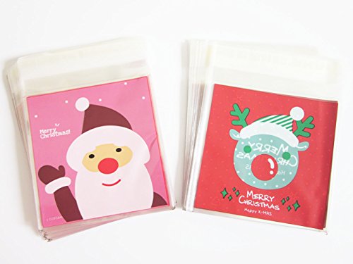 - Quantity: 200pcs (100pcs santa claus+100pcs reindeer) Christmas self-adhesive OPP bags, good necessity for home and kitchen use.