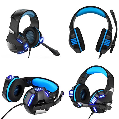 Gaming Headset Micolindun Mikrofon Kopfhorer Verstellbar Over-Ear Ultra Leicht Komfortabel Stereo Sound Bass 3.5mm LED fur PS4, PC, Laptop, Tablet, Phone, MAC (inkl. Adapter)