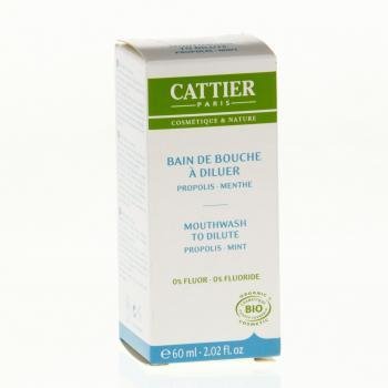 -. Feature : Cattier Mouthwash to Dilute 60ml formulated without sulfate and fluroine highly concentrated refreshes the breath and sanitizes the oral cavity. Thanks to its anti-bacterial, purifying and protective actives (propolis, mint essential oil and stevia), it ensures a perfect dental hygiene. / Organic certified.