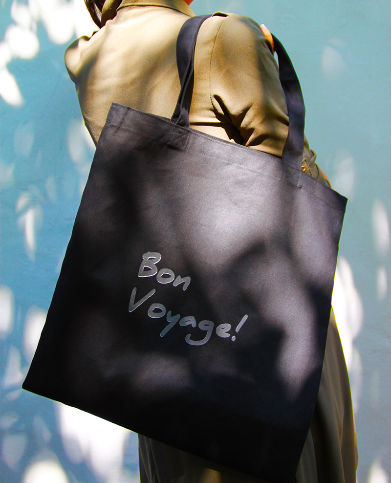가방 전면에는 Bon Voyage! -좋은 여행되세요 라는 뜻의 언제들어도 기분좋은 텍스트가 프린트 되어 있습니다.