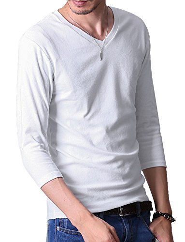 -. Title : FTELA(フテラ)シャツ メンズ 無地 七分袖 カットソー Vネック シンプル Tシャツ 7分袖 スリムフィット