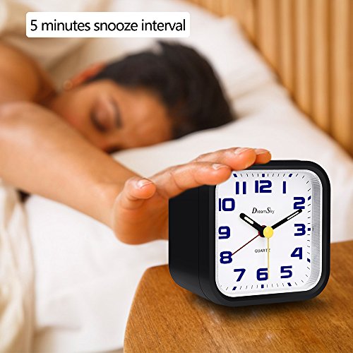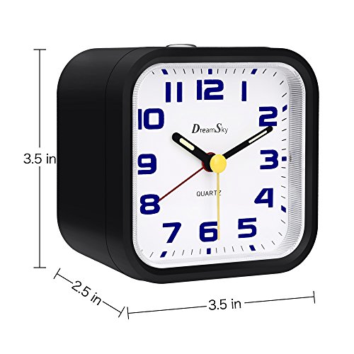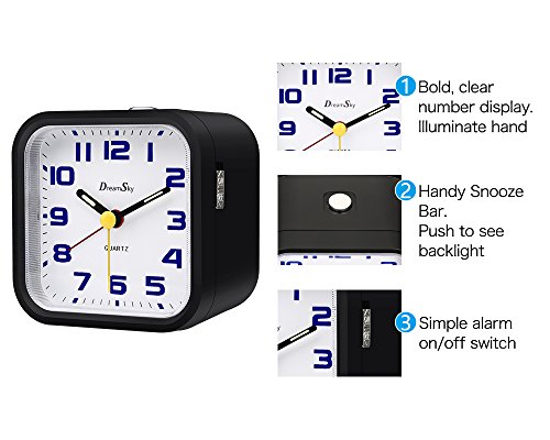 Light On Demand Plus Liminous Hand It comes complete with a dial light on demand , the backlight will bright enough to see but not light up the room to disturb other sleepers. If the analog clock is exposed to strong sunlight during the day the luminous hands will glow in dark for up to 4 hours Ascending Alarms With Snooze It features an ascending alarm which gets louder and louder to wake most sleepers . 5 minutes snooze interval allow you enjoy a little longer sleep, the handy snooze button is large for easily location . Battery Operated Simple Analogy Clock 2 AA ordinary zinc battery operated , portable and long last its life . portable to carry anywhere on the top of travel . Warranty 90 days money back gurantee 365 days free replacement . 0