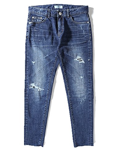 -. Feature : ★当店発送商品のご注文合計金額8,640円以上で“全国配送料無料” ★平日12時までのご注文は“即日配達”※土日/祝日を除きます。 / 【サイズ 単位:約cm】 表記:1(S)|2(M)|3(L) ウエスト:76|80|84 股上:24|25|25 股下:71|72|73 ワタリ:24|25|26 裾幅:14|15|16 / 【カラー】 インディゴ / 【素材】 綿98% ポリ2% / 【モデルデータ】 身長173cm 体重58kg 2(M)サイズ着用 【商品説明】 色落ちにダメージやクラッシュ、ヒゲやアタリ、さらにはペンキを散りばめたかのようなペイント等、実際に穿き込んだような“リアル”なユーズド感が魅力のスキニーデニムパンツです。 スリムフィット×テーパードラインで設計した抜群の細身シルエットで、レングスは裾をカットオフ。 しっかりとした生地ながらもストレッチデニムによって動作性に優れるところもポイントです。 フロントジッパーフライ、ベーシックな5ポケット仕様で仕立て上げています。