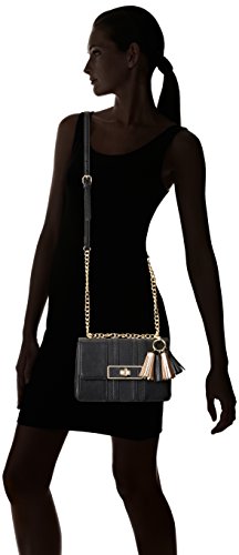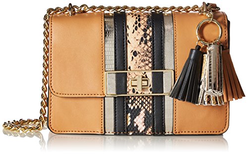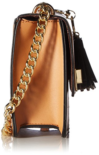 -. Feature : Mixed-texture cross-body bag featuring four-tassel fob and chain shoulder strap / Pockets: 2 interior slip, 1 interior zip