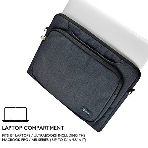-. Feature : ENVOY LAPTOP SHOULDER MESSENGER BAG: The exclusive ENVOY Laptop shoulder case by caseen® is an awesome way to carry all your necessary things wherever you may be heading. You will not have to carry a bulky heavy bag on your shoulders as this laptop bag allows you to stay stylishly professional. It is great to take along when traveling so you can always stay organized / ULTRA PROTECTION: caseen® laptop shoulder case is highly protective as its P.R.Imary concern is safety of your laptop. It features soft polyester material that provides extra protection. It effectively absorbs accidental bumps, reduces damages caused by impacts, and protects your computer from scratches. / ADJUSTABLE SHOULDER STRAP: Adjustable and removable shoulder straps and comfortable handles for convenient and stylish carrying / SMART & WELL-ORGANIZED: This caseen® laptop bag provides many pockets a top-loading zipper and a front pocket to neatly arrange your important things such as chargers, keys, mobile phones, and more. / INTERIOR DIMENSIONS: 13 x 9.5 x 1 inches