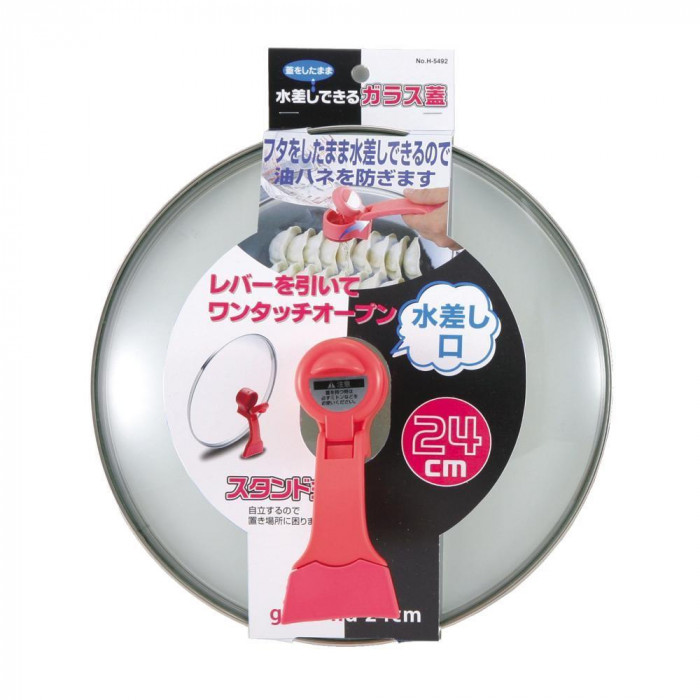 | 水差しが蓋をしたままできるので、油ハネの心配がありません。立てて置くこともできる、便利なガラス蓋です。 |