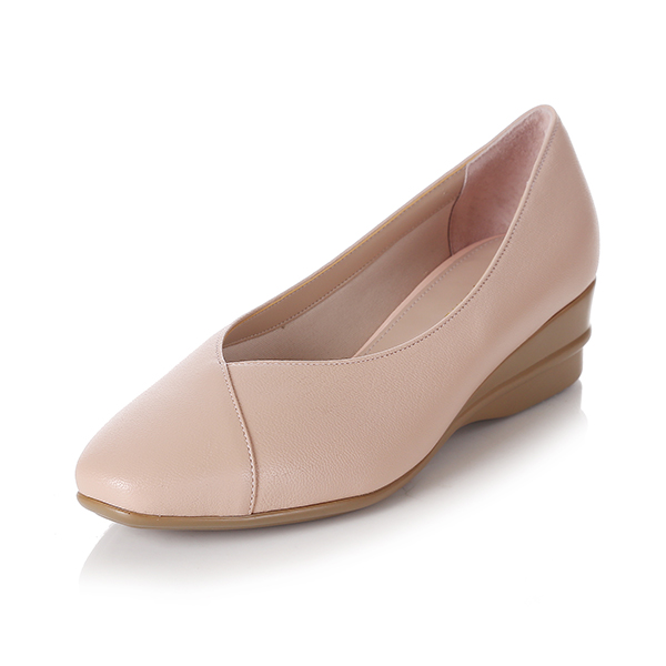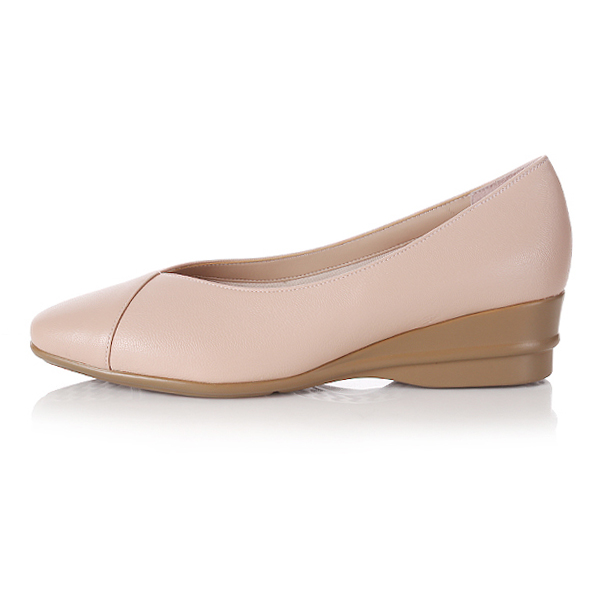 여성스러운 쉐입의 스퀘어 토에 베이직한 어퍼 디자인의 컴포트 플랫 슈즈.