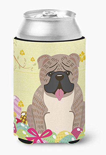 Caroline's Treasures Easter Eggs English Bulldog Grey Brindle Can or Bottle Hugger, Can Hugger, Multicolor