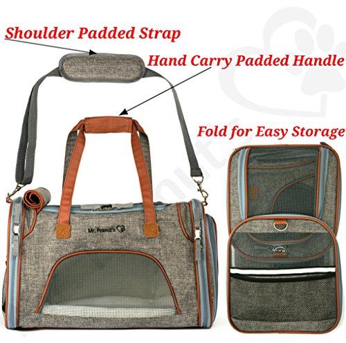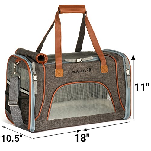 Airline Approved Soft Sided Pet Carrier by Mr. Peanut's, Low Profile Travel Tote with Fleece Bedding, Premium Zippers & Metal Safety Clasp, Under Seat Compatibility, Perfect for Cats and Small Dogs