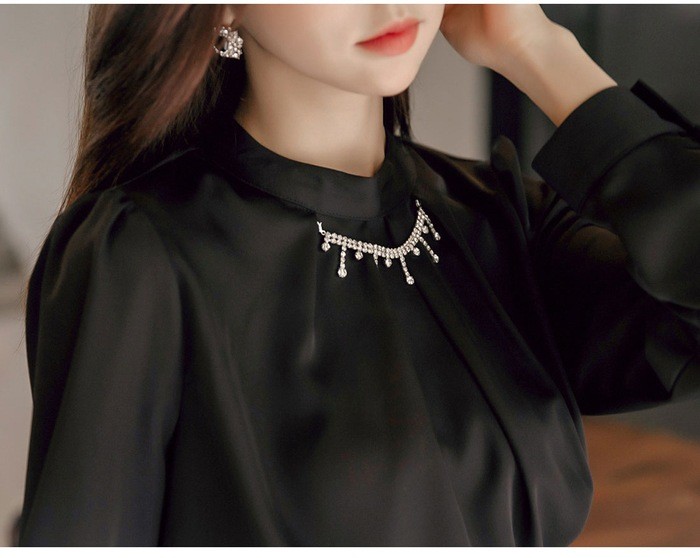 商品名:ブラウス プルオーバー 長袖 無地 ネックレス