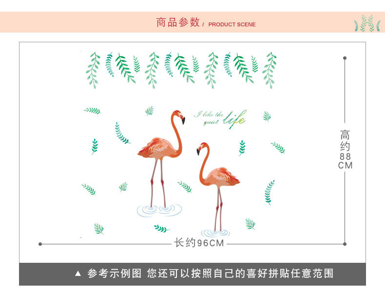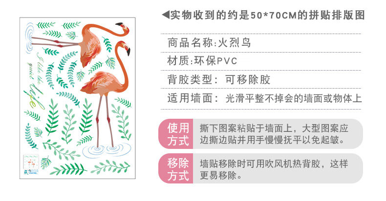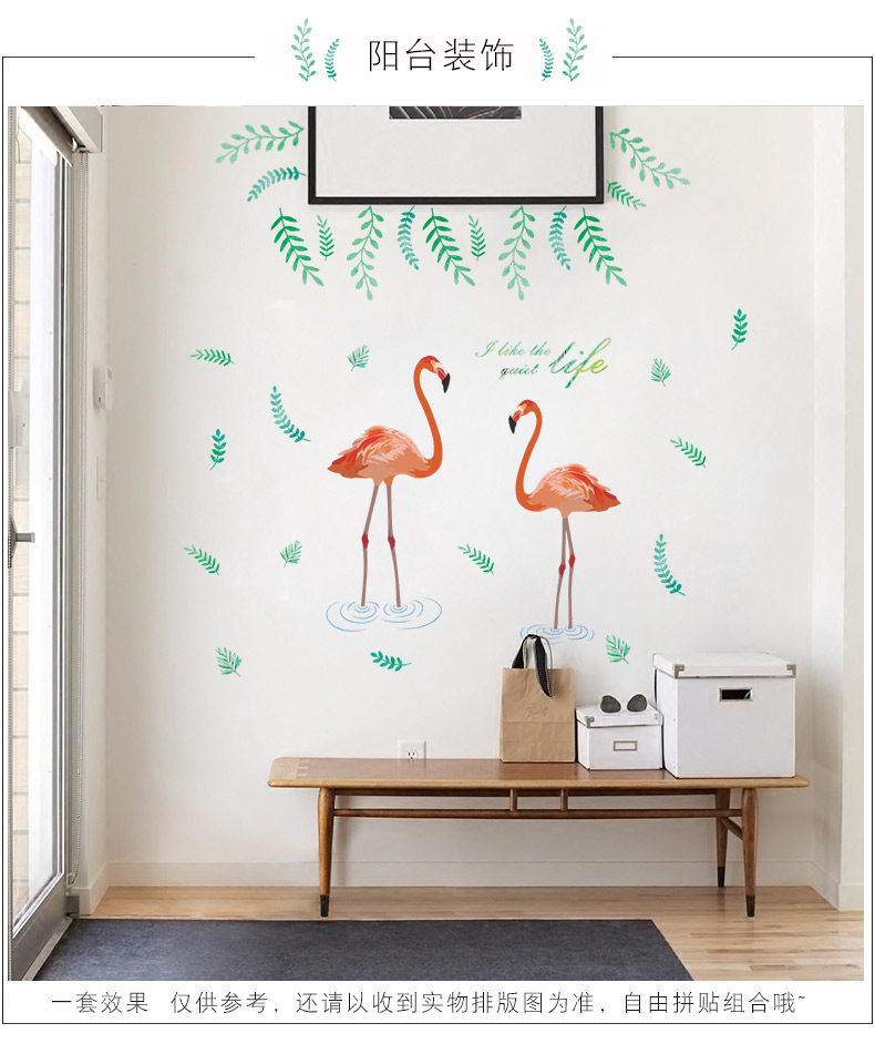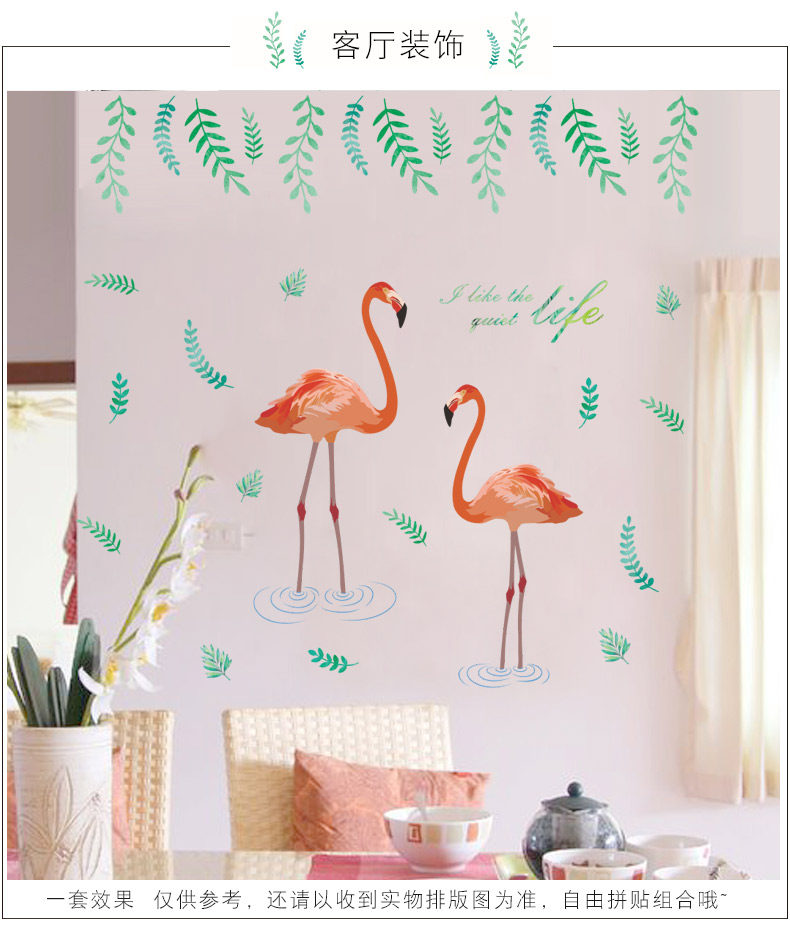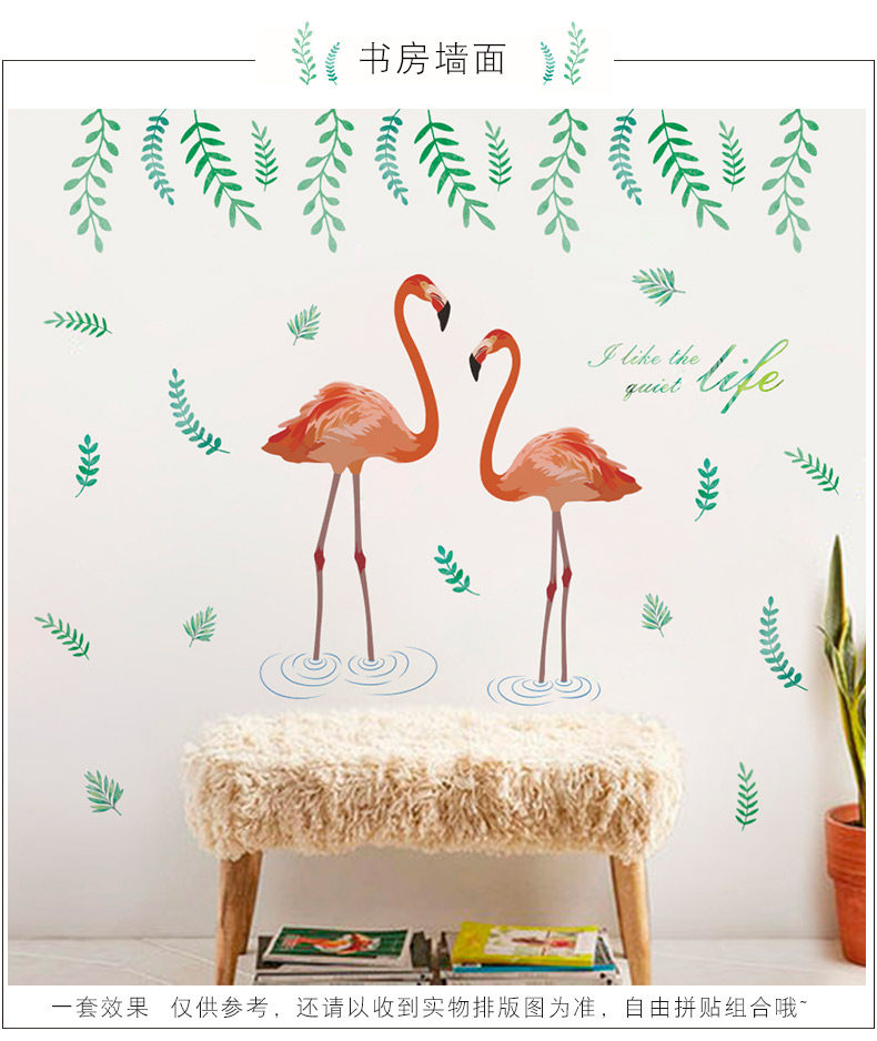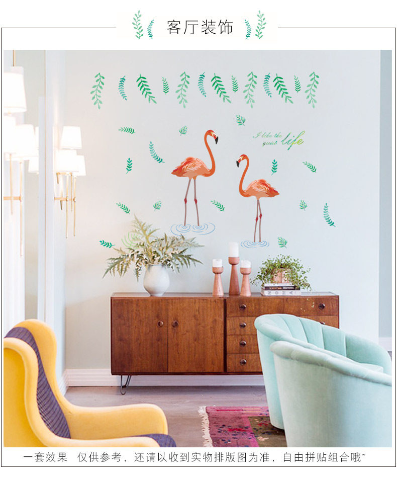艺术贴纸火烈鸟墙贴客厅卧室墙面壁纸墙壁宿舍贴纸可移除环保墙贴