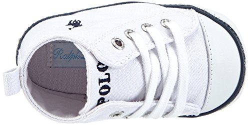 Ralph Lauren Layette Harbour Hi Top Sneaker (Infant/Toddler),White/Navy,0 M US Infant