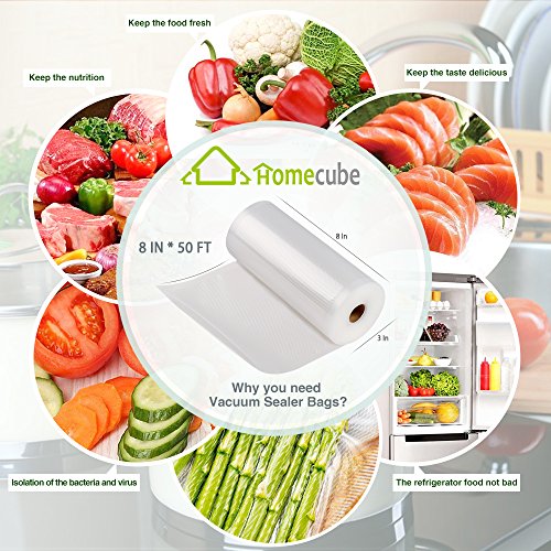 FITS ALL VACUUM SEALER:Homecube vacuum sealer rolls can be used in all brand clamp style vacuum sealers.