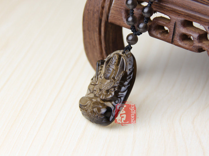 冰种黑曜石虚空藏吊坠 属牛虎本命佛
