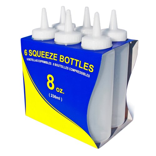 New Star Foodservice 26115 Squeeze Bottles, Plastic, 8 oz, Clear, Pack of 6