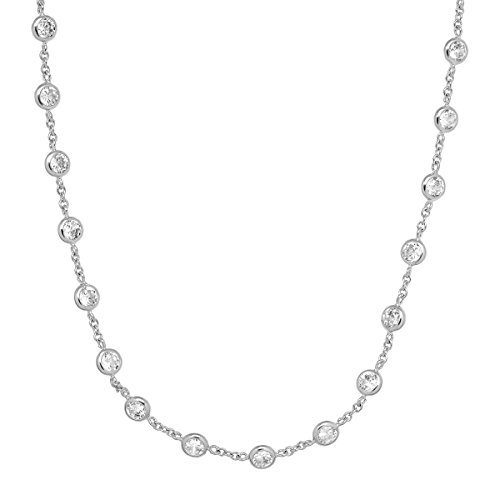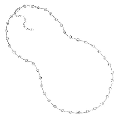 Rock this simple necklace on its own or layer it with your other favorite pieces for an ultra-chic look! Crafted in rhodium-plated sterling silver, round-cut white cubic zirconia stations dot the chain, finished with a lobster clasp. Piece measures 18 inches in length plus a 2-inch extender for adjustable length.Feature