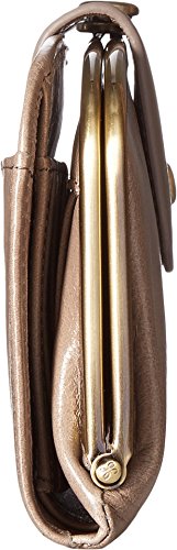 Superbly mixing class and function, this beautiful Halo Compact Wallet by Hobo is the perfect accessory for all occasions! This clutch is made from smooth, top-grain leather which has been extra tumbled for a unique, broken-in vintage look and shine. Kiss-lock closure on one side opens up to reveal a spacious storage compartment. Undo the snap closure on the other side, and you'll find 9 card slots and a thumb-glide ID holder, perfect for keeping your most important cards within easy reach. A convenient back wall slip pocket is perfect for your phone. Measures 6.75" x 4" x 1".Feature