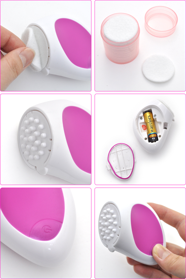 洗顔やクレンジングをしながらアタッチメント部分をお肌にあて、スイッチを押して振動させます。