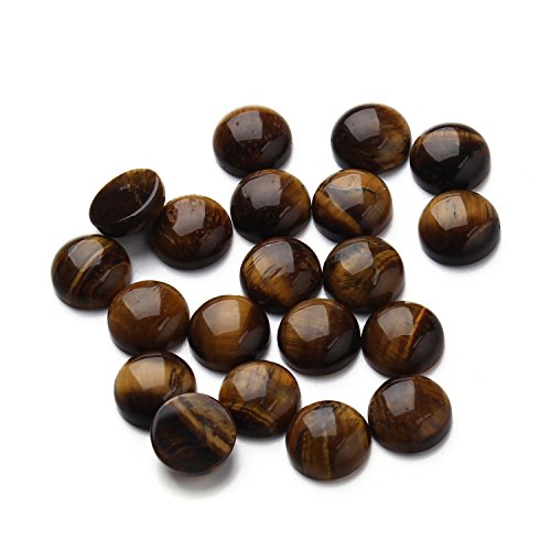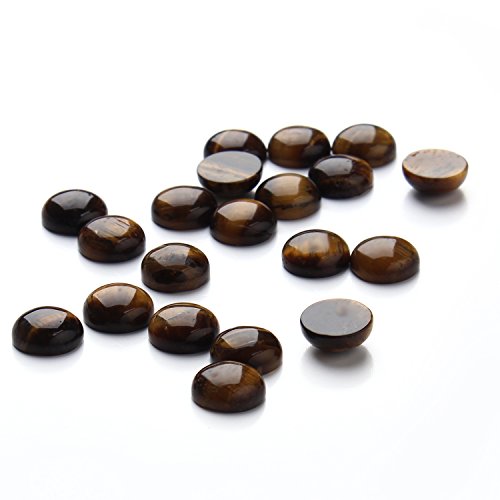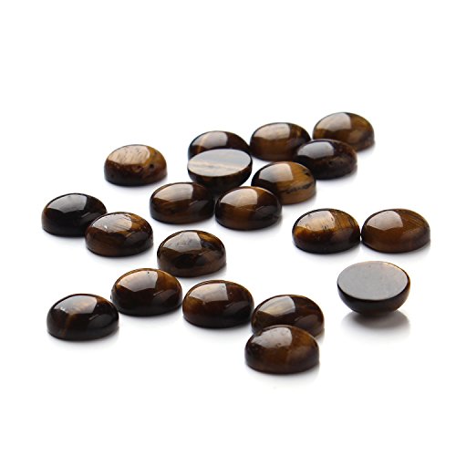 Linsoir Beads Yellow Tiger Eye Cabochons Natural Round Flatback Gemstone Beads 12mm Pack of 20