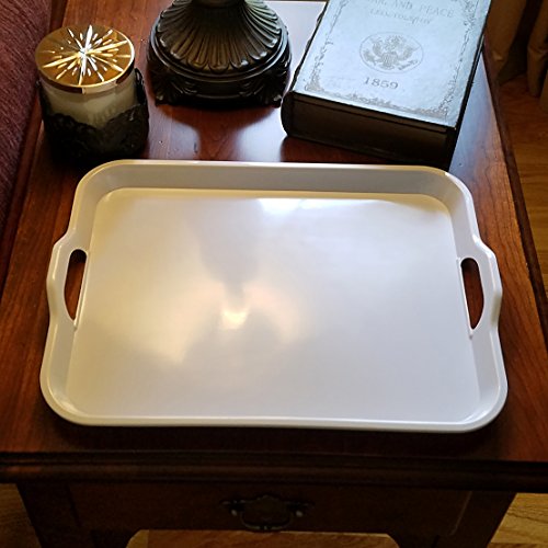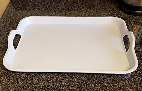 Clean Cut Large White Rectangular Melamine Plastic Serving Tray for Food - Breakfast Tray - 17.5 inches x 13 i
