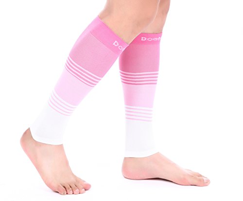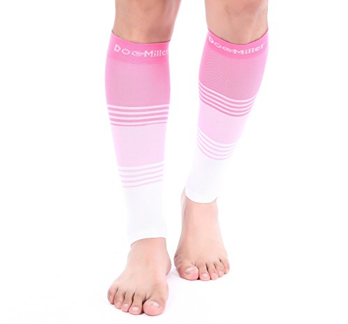Doc Miller Calf Compression Sleeves are made of Durable, Breathable, Comfortable, Premium fabric made of high-grade Nylon (77%) and Spandex (23%) for a snug, comfortable, compressive fit. The sleeves aid in faster recovery for improved performance and support. By boosting blood circulation in your legs and preventing injuries, the sleeves allows you to feel fresher for more activity. The perfect graduated support ranging from 20-30 mmHg allows for more blood flow where needed. Perfect opaqueness provides a professional look and feel and the compression lasts a long time. The open toe version can be used as pregnancy maternity stockings. What Size Should You Get? The sizing chart displays product sizes for a range of calf sizes including plus sizes. Who Should Use It Effective for both men, women and teens, use them for a wide range of activities - from warming up to sessions of Tennis, Basketball, Racquetball, Football, Soccer, Hiking, Cross Fit, and other athletic activity. Fabric characteristics keep it comfortable regardless of season. If you are pregnant, in nursing as a nurse, in retail or construction this product will prevent soreness and aching feet. If you travel by air, this product may help reduce fatigue and Deep Vein Thrombosis (DVT). This product may help those suffering from lymphedema, neuropathy, sciatica, calf cramps, spider or varicose veins, venous insufficiency, shin splints, calf pain, swelling in the feet, inflammation, pain in leg, soreness and aids in faster recovery from sports activities and running. Studies show compression accelerates recovery after workout by increased blood circulation. This product may also help you with Restless Legs Syndrome (RLS). Don't wait anymore! Experience the benefits yourself. Different sizes sell out - if you see your favorite color/size click Add to Cart. Your calves and legs will thank you! 0 |