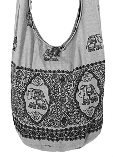 Hippie Sling Crossbody Bag Purse, a versatile and stylish hobo carryall made of durable but lightweight cotton fabric. New elephant print design, unique and like no other.