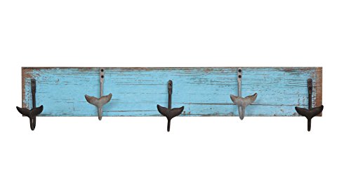 Creative Co-Op Wall Hanger with 5 Metal Whale Tail Hooks, 23.5" x 5"