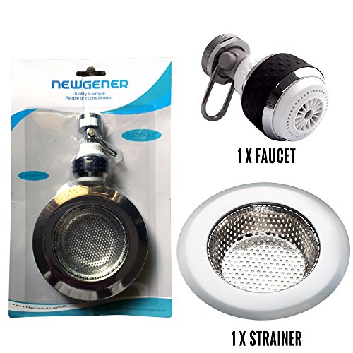 Stainless Steel Kitchen Sink Strainer Mesh (Large Sink Strainer) with Faucet Aerator (Aerator Spray/ Swivel Sprayer for Veggie Washing While Saving Water Suitable for Kitchen and Bathroom)by NEWGENER