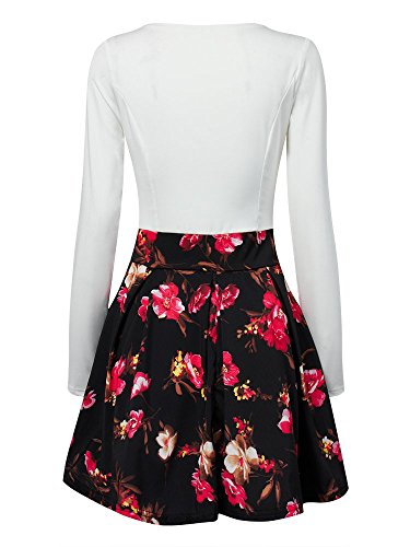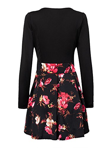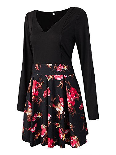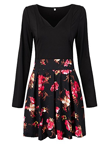 Feature : Women Floral Print Patchwork V Neck Mini Dress (Random) / If you want to choose, please contact us after ordering. If not, we will random. / (Random)Color Black L, Black M, Black S, Black XS, Black XXS,...