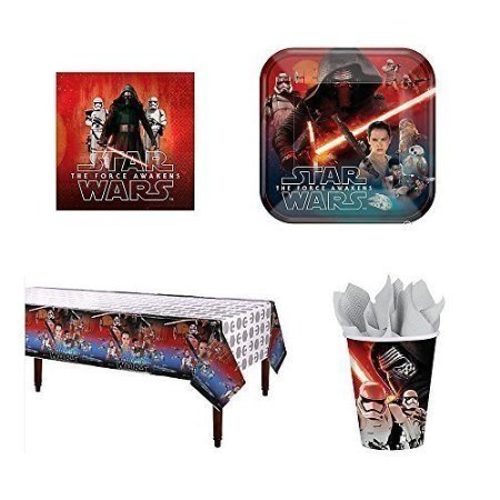 -. Title : Star Wars VII The Force Awakens Party Supply Pack for 16 People - 16 Dinner Plates, 16 Luncheon Napkins, 16 Cups 1 Tablecloth