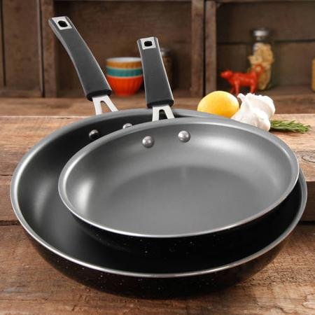 -. Title : The Pioneer Woman Butterfly Vintage Speckle 2-Pack Non-Stick Frying Pan Set, Black