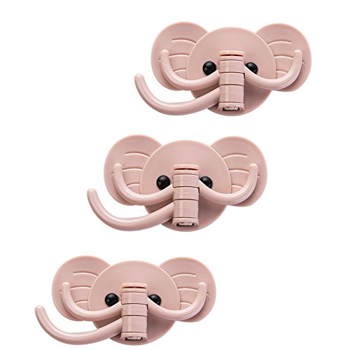 Home-organizer Tech 3M Self-adhesive Elephant Shaped Hooks Swivel Hooks Towel Keys Hats Hangers Bathroom Kitchen Hanger Wall Mount Hooks,3 - Pieces (Pink)