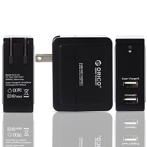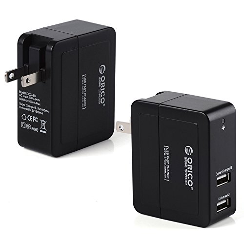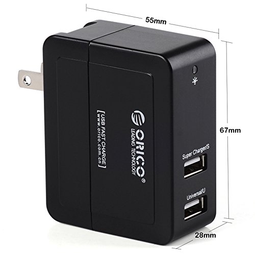 ORICO DCX-2U 20W 5V,1*2.4A,1*1.5A, Dual USB Ports high-speed AC Wall Charger for Apple, Android Phones and Tablets: Apple iPad 2, New iPad 3, iPad Mini iPhone 5S 5C 5 4s 4 3 3Gs, Samsung Galaxy S4,S5, HTC Samsung Motorola Android Phones and External