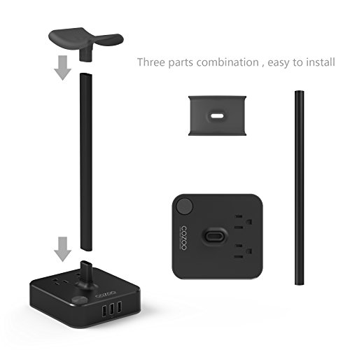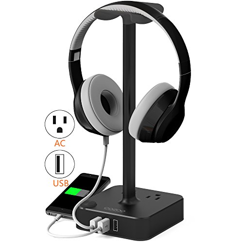 Unique Features: While other headset stands only offer a place to store your headphones, the COZOO Aluminum Headset Stand is equipped with 3 USB Charging hub and 2 AC outlets, providing easy Charge to your Devices. Charge 3 & Desktop Organization Charge multiple devices such as smart phones, tablets, headphones, Echo dot, kindle, external battery,power bank chargers without the clutter of cables and wires. Fast Charging 4.0 amps output enables the power strip charge 3 devices including your tablets and smartphones simultaneously at full speed, save your time up to 50%. With the smart technology, it can automatically identify the type of device and deliver the suitable current for your device like the original power adapter. 2 AC Power Sockets No need to bend over to find a charger. you can charge your macbook and computer on your desk. Specifications Materials: Plastic(ABS & PC) + Metal(Aluminum) Color: Black & Orange AC Rated Input: 110-240V , 50/60Hz AC Rated Output: AC 100-240V , 50/60Hz, 1250W USB Total Output: DC 5V 4.0A (max) Size: 4.1 x 3.9 x 9.86 in / 140 x 99 x 250 mm Weight: 14 oz / 400g Headphone stand Compatible: - Sennheiser, Sony, Audio-Technica, Beats, Bose, Philips, JVX, Shure, AKG ,Logitech, Razer - Gamer, DJ, over ear, on ear,bluetooth, wireless and more Charger Compatible: - Apple iPhone X, iPhone 8, 8 Plus,iPhone 7, 7 Plus, 6s, 6s Plus, 6 Plus, Se, 5, 5C, 5S, iPad Pro/Mini/Air - Samsung Galaxy s8, S7, S6 Edge, S6, S5, S4, S3, Note 8 7 5 4, Tab - Nexus 10 9 7 6 5, -HTC,LG, Motorola, Blackberry, Kindle (Fire), Nintendo Switch,ZTE,HUAWEI, Android and more.Feature