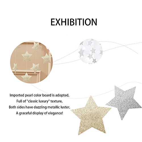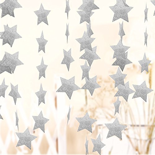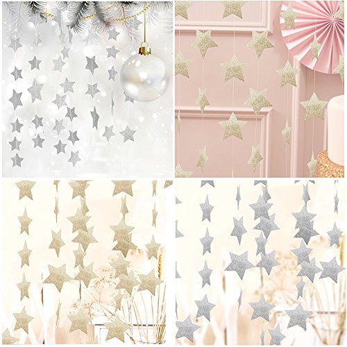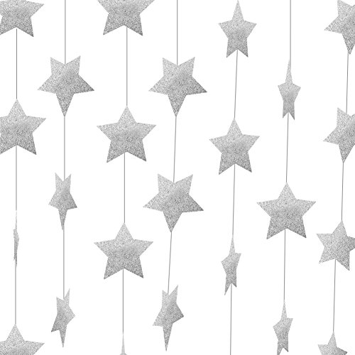 Star Garland-Star Garland Decorations-Glod/Silver Paper Star Banner Hanggings for Wedding Birthday Party, Baby Shower, Event & Party Supplies (4, Silver)