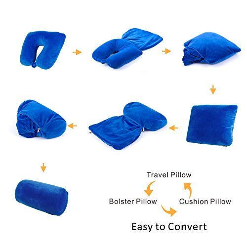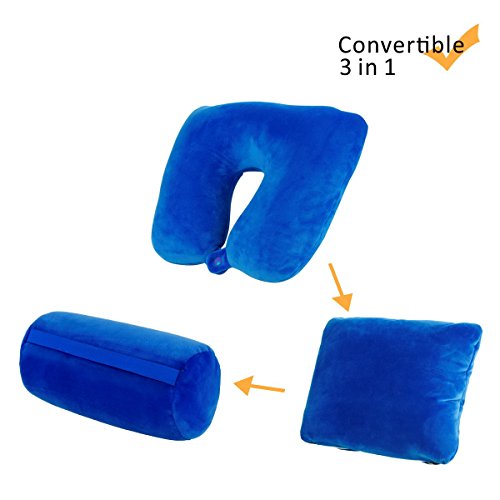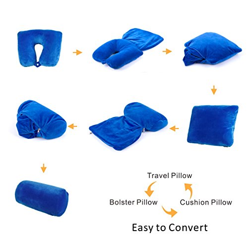 JML 3 in 1 Travel Pillow - Feather Soft Neck Support Pillow with Foam Particles for Business Travel and Home (Blue)