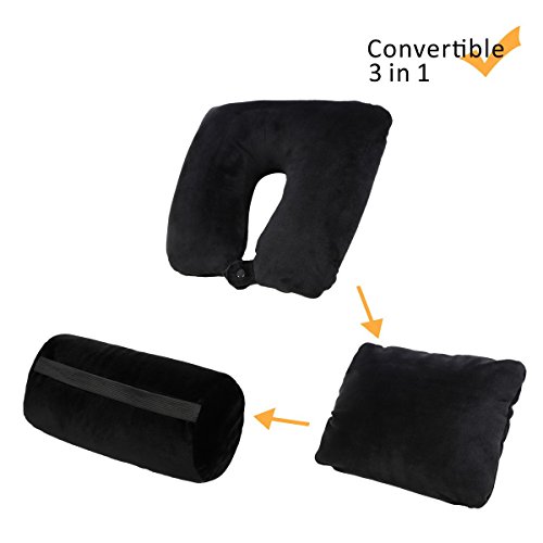 JML 3 in 1 Travel Pillow - Feather Soft Neck Support Pillow with Foam Particles for Business Travel and Home (Black)
