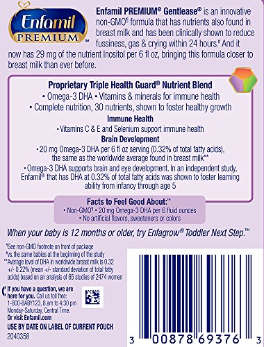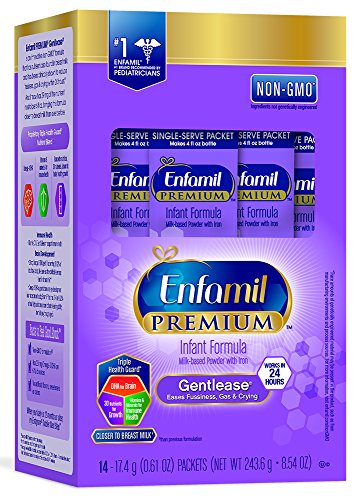Enfamil PREMIUM Non-GMO Gentlease Infant Formula, Powder, 17.4 Gram Single Serve Packets, 14 Count
