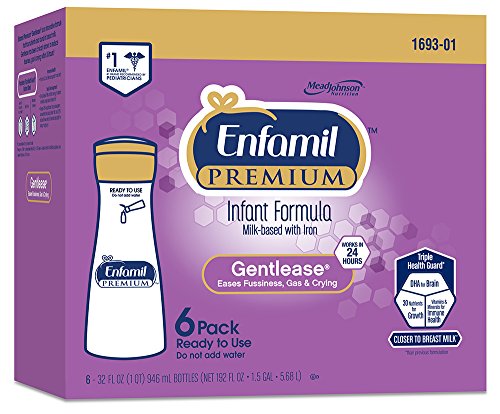 Enfamil PREMIUM Non-GMO Gentlease Infant Formula, Ready to Use, 32 Fluid Ounce Bottle, 6 Count